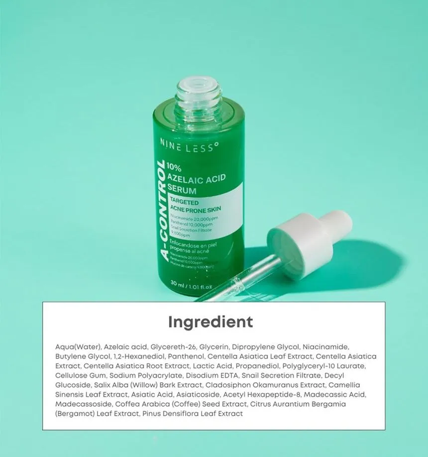 Aqua (Water), Azelaic Acid, Glycereth-26, Glycerin, Dipropylene Glycol, Niacinamide, Butylene Glycol, 1,2-Hexanediol, Panthenol, Centella Asiatica Leaf Extract, Centella Asiatica Extract, Centella Asiatica Root Extract, Lactic Acid, Propanediol, Polyglyceryl-10 Laurate, Cellulose Gum, Sodium Polyacrylate, Disodium EDTA, Snail Secretion Filtrate, Decyl Glucoside, Salix Alba (Willow) Bark Extract, Cladosiphon Okamuranus Extract, Camellia Sinensis Leaf Extract, Asiatic Acid, Asiaticoside, Acetyl Hexapeptide-8, Madecassic Acid, Madecassoside, Coffea Arabica (Coffee) Seed Extract, Citrus Aurantium Bergamia (Bergamot) Leaf Extract, Pinus Densiflora Leaf Extract More